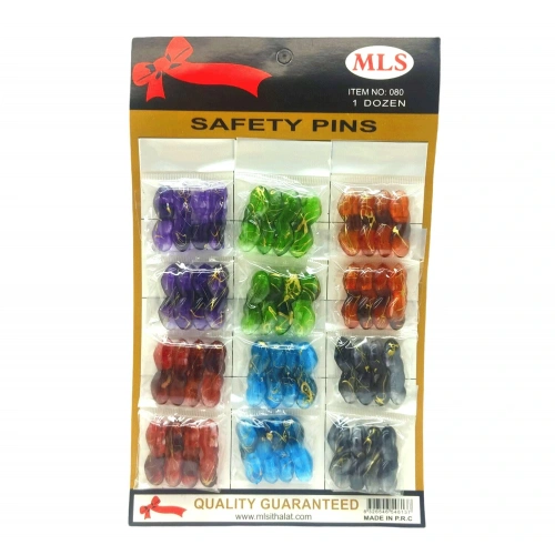 Mls No-080 ( Şeffaf Renkli ) Yaka & Eşarp İğnesi 12li Kart*5x24
