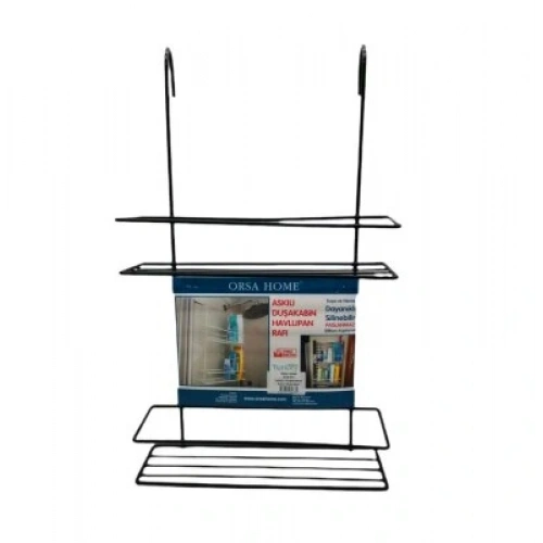 Orsa-973 ( 2 Katlı ) ( Siyah ) Duş Kabin Rafı ( Askılıklı Seyyar Kullanım )*4=k