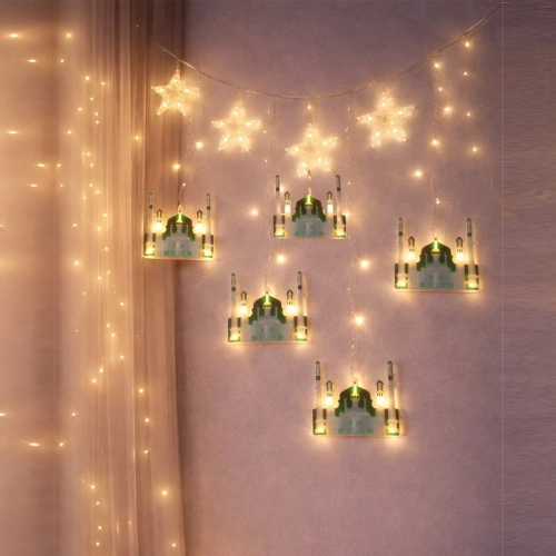 Wınnboss Ekl-09-05 ( 3mt ) ( Fişli & Eklemeli ) Ramazan Dekor Lamba & Perde Led ( Yeşil Cami & Yıldız )*50
